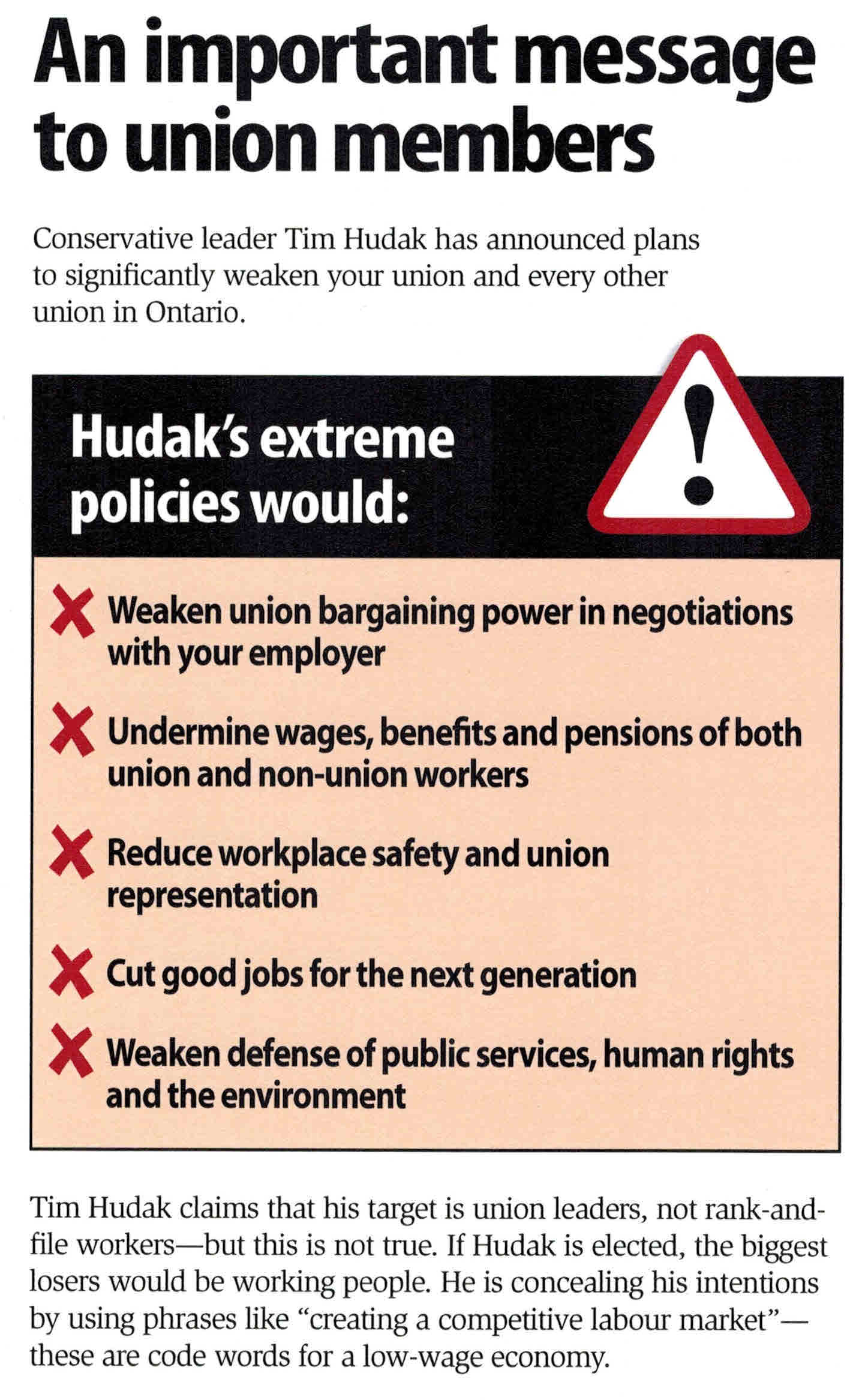 Information session on why electing Tim Hudak would be detrimental to everyone in Ontario.