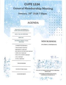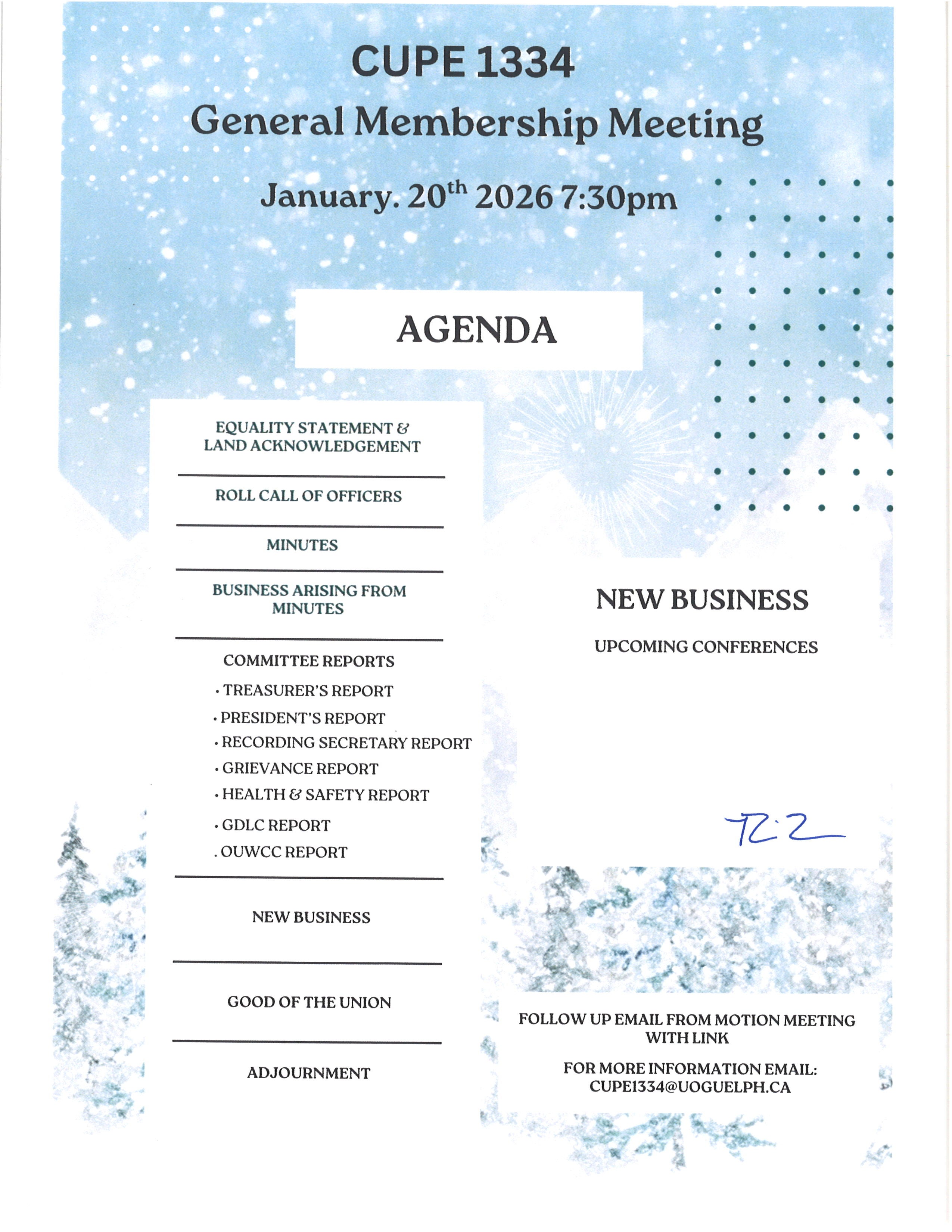 CUPE 1334 General Membership Meeting Agenda for September.16th 2025