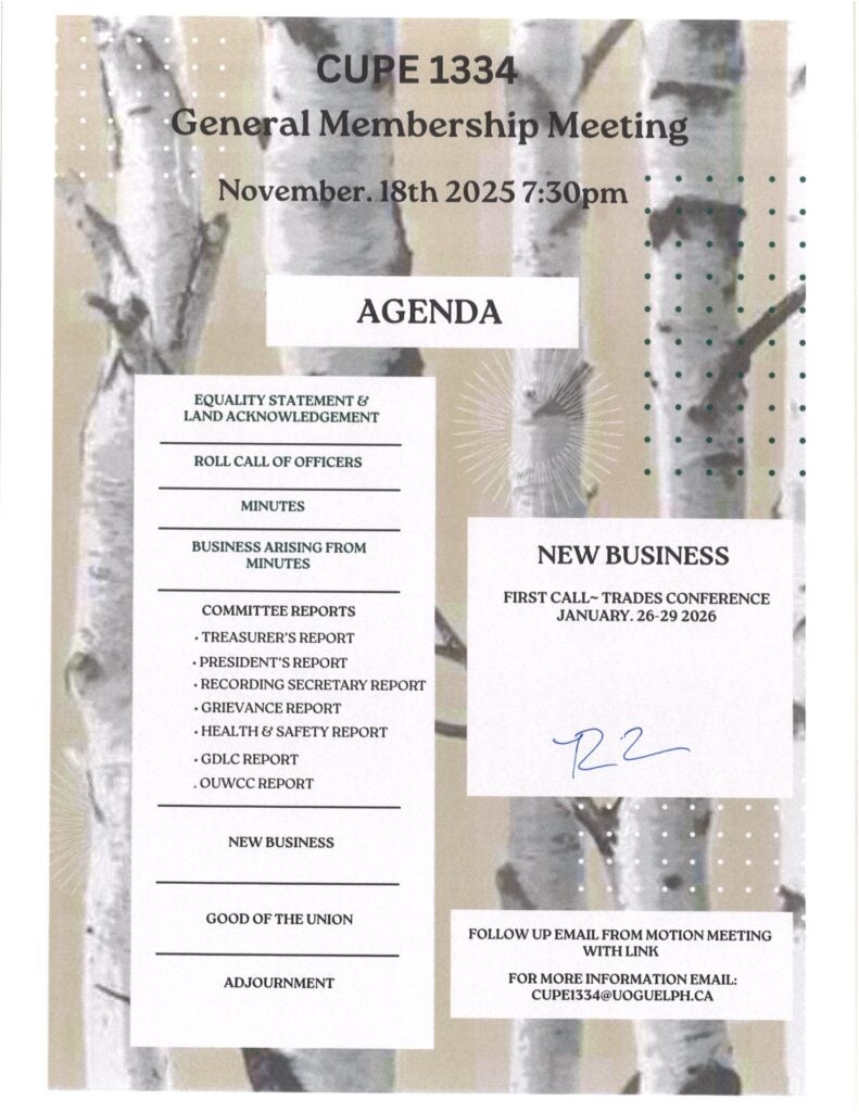 CUPE 1334 General Membership Meeting Agenda for September.16th 2025