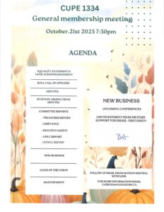 CUPE 1334 General Membership Meeting Agenda for September.16th 2025