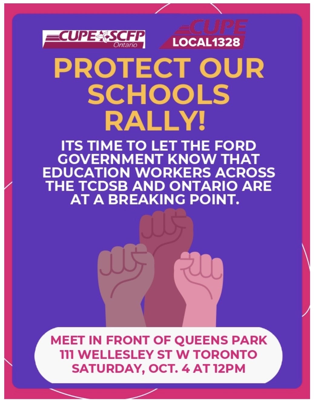 Protect our Schools Rally October 4th 2025 at 12:00pm